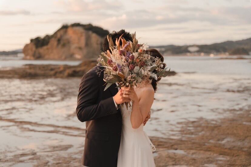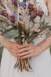 ドライフラワーとプリザーブドフラワーを使用したウエディングブーケになります。