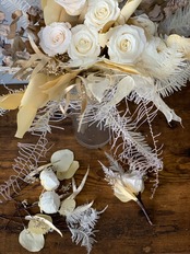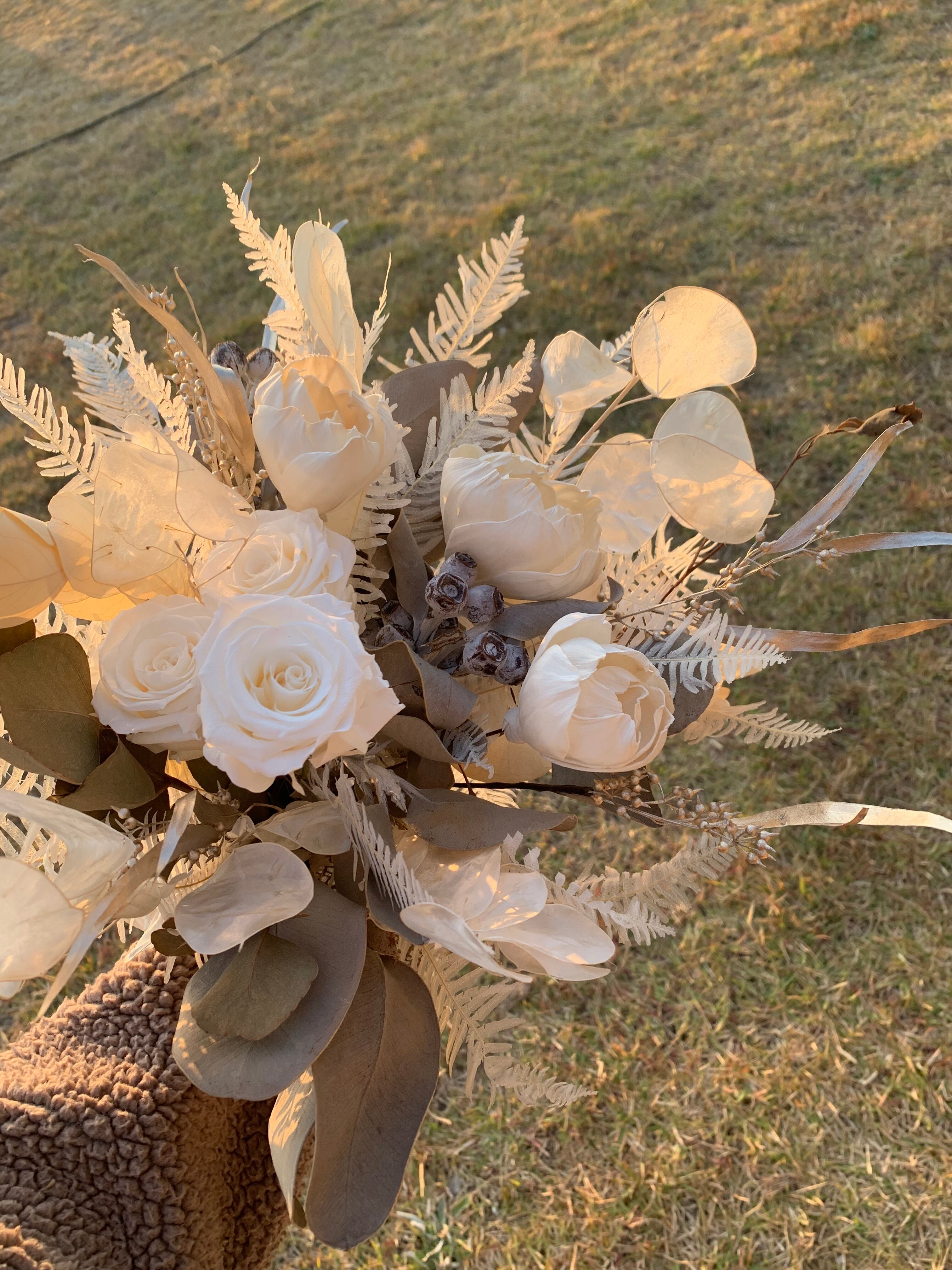 ドライフラワーとプリザーブドフラワーを使用したウエディングブーケになります。